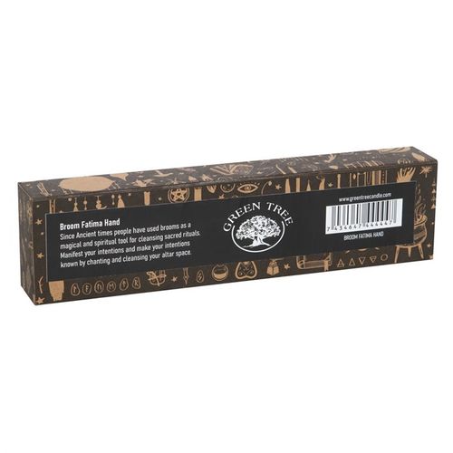 This besom broom, also called an altar brush, is a traditional tool used for both practical and spiritual purposes. Whether brushing away dust from within the home or cleansing an altar space, this small broom will sweep away all unwanted dirt and negative energies. Bound with jute string and finished with a metal hand of Hamsa charm.