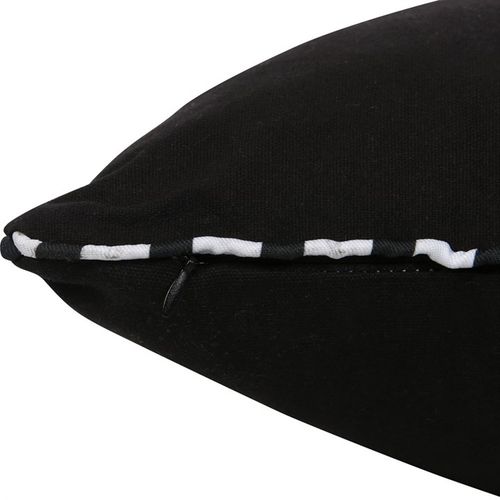 Cosy up your crypt with this square cushion featuring spooky 'Creepy and Cosy' text accented by black and white striped edging. Zippered cotton cover with polyfibre insert.