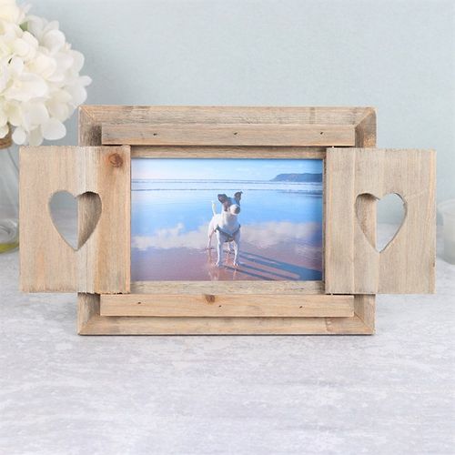 Driftwood Photo Frame With Heart Shutters