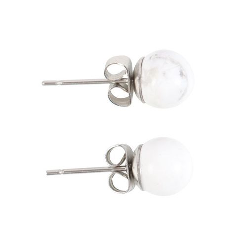 This pair of howlite crystal stud earrings comes on a matching backing card and makes a meaningful gift for those in need of spiritual protection. Howlite is a powerful semi-precious stone believed to absorb stress and negative thoughts, making it ideal for emotional healing and relaxation. Finished with sterling silver posts with butterfly backs.