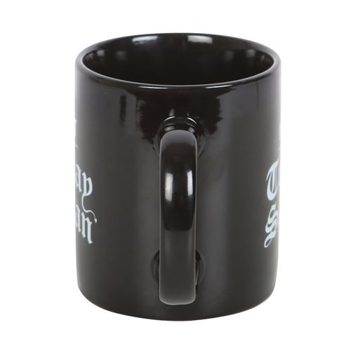 Keep your demons at bay with this funny ceramic mug. Features 'Not Today Satan' text written in gothic lettering for warding off unwanted hooved guests.300ml capcity. Microwave safe.