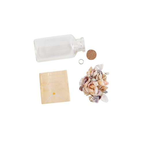 Remember sunny days by the sea with this corked glass souvenir bottle. Each bottle comes with a variety of tiny beach shells, a shark, shell, anchor, starfish, dolphin, or seahorse charm, and a blank note for writing down special memories and messages. This Message in a Bottle makes a great take-away gift or souvenir for any coastal holiday destination. Sold as a set of 18 in a matchin cardboard display box.