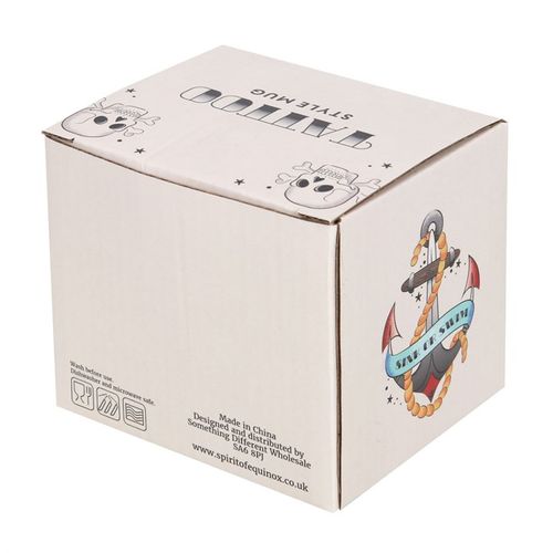 This 'Sink or Swim' mug features an anchor design in a vintage tattoo inspired style. Anchors are a popular choice of tattoo, said to represent stability and a grounded nature. Product Dimensions: H9.4cm x W8.6cm x D7.7cm Packaged Dimensions: H10.9cm x W9.6cm x D9.1cm