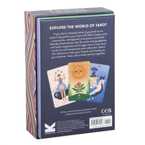 The Tarot For All Ages tarot card deck by Elizabeth Haidle includes a 78-card deck and and informational guidebook. This deck has been thoughtfully designed for younger audiences with child-friendly illustrations and a simplified instruction booklet, making it a great starter deck for beginners of all ages. Beautifully presented in a sliding box.