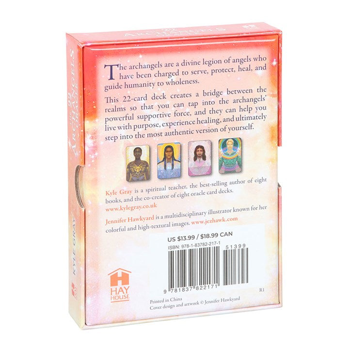 The 22 Archangels oracle card deck by Kyle Gray includes a 22-card deck to help users connect with the powerful and supportive Archangels, who are divine beings charged with guiding, healing, and protecting humanity. By tapping into the Archangels' energies, users can experience their comforting presence and support on their spiritual journey. Presented in a matching box and illustrated by Jennifer Hawkyard.