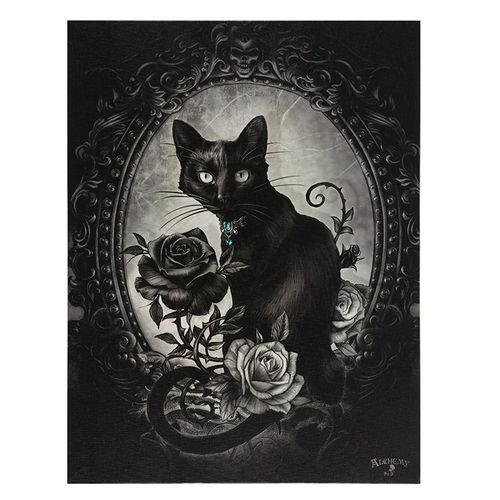 This small canvas plaque features 'Paracelsus (The Philosopher's Familiar)' artwork by the popular Alchemy Gothic of London. A black cat sits amongst thorned roses in this stunning, greyscale piece. 19x25cm. The digital watermark will not appear in the print design. Product Dimensions: H25cm x W19cm x D1.5cm Packaged Dimensions: H25cm x W19cm x D1.5cm