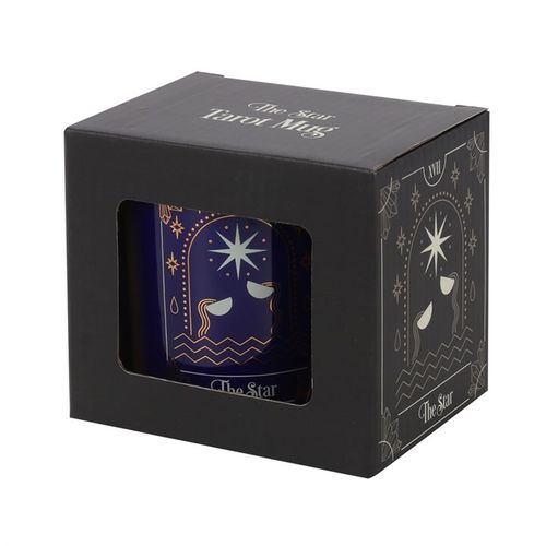 Stunning navy blue mug with an illustration of 'The Star' tarot card with metallic gold accents. Microwave and dishwasher safe. Product Dimensions: H9.5cm x W12cm x D8cm Packaged Dimensions: H10cm x W11.5cm x D8.5cm